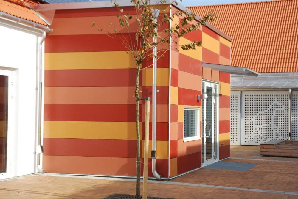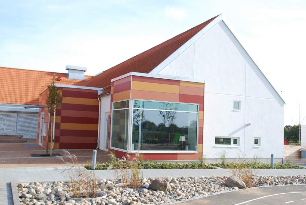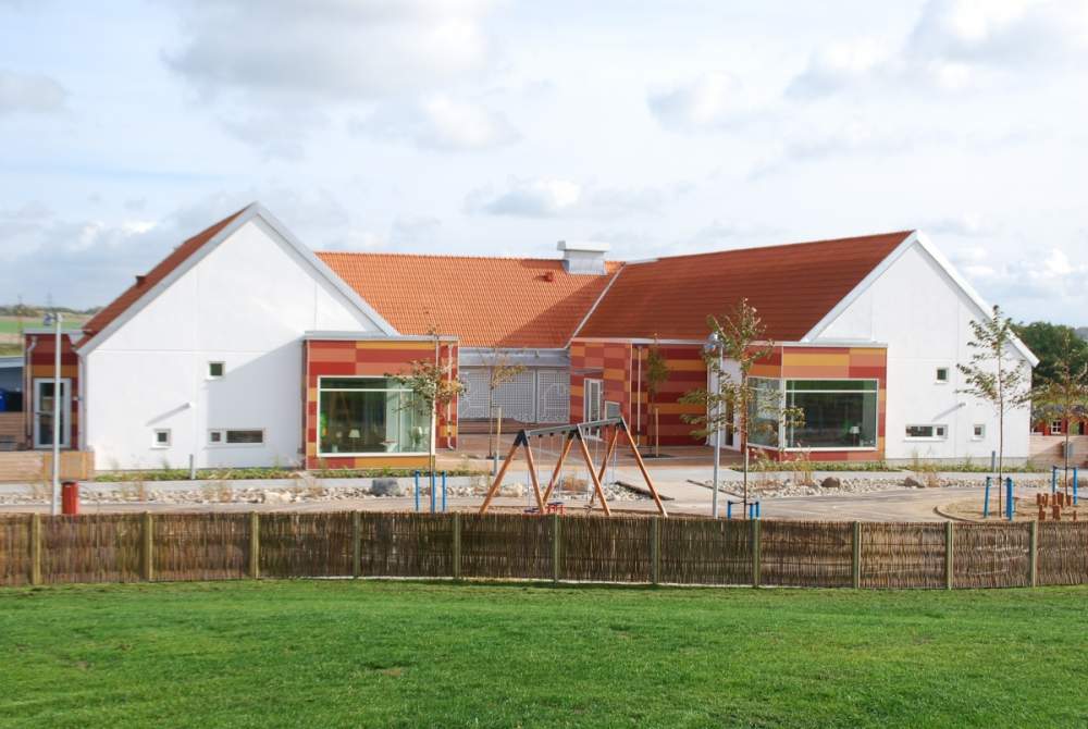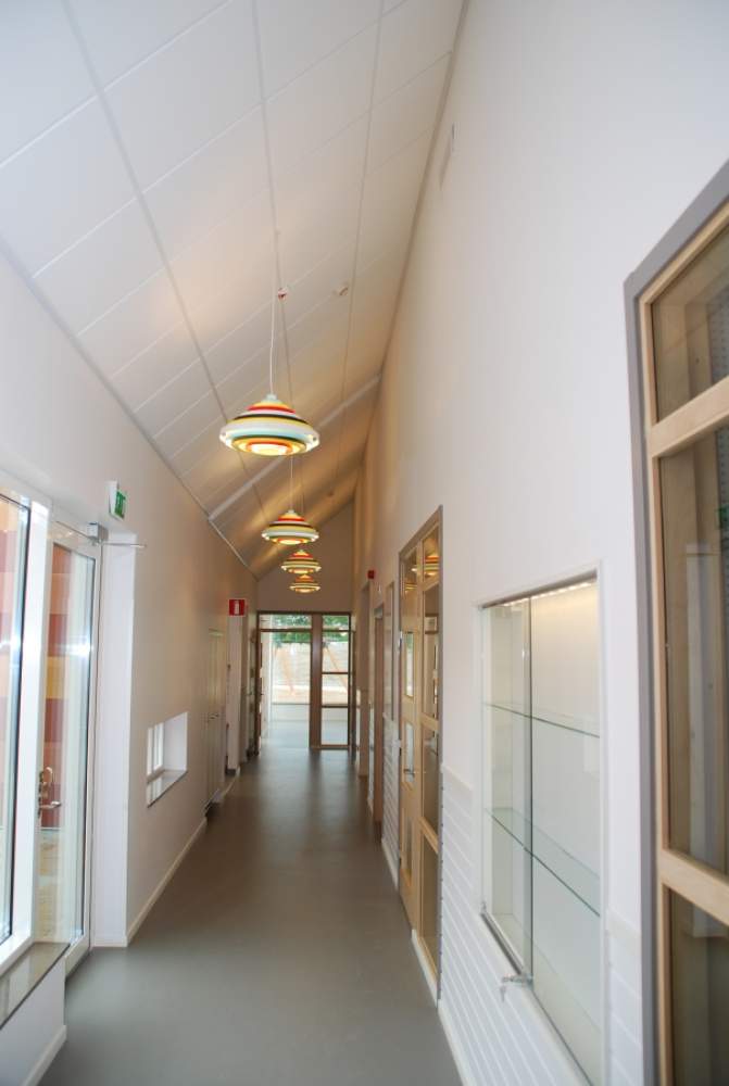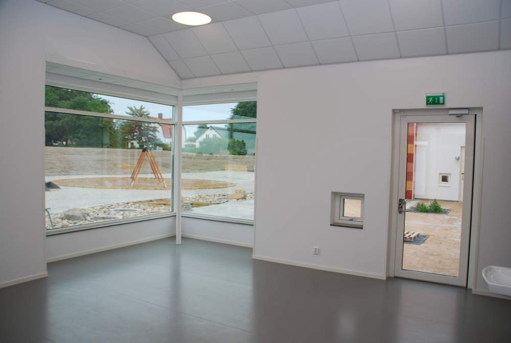 Nybyggnad förskola 60 platser. Förskolan ligger i utkanten av en äldre bymiljö.
